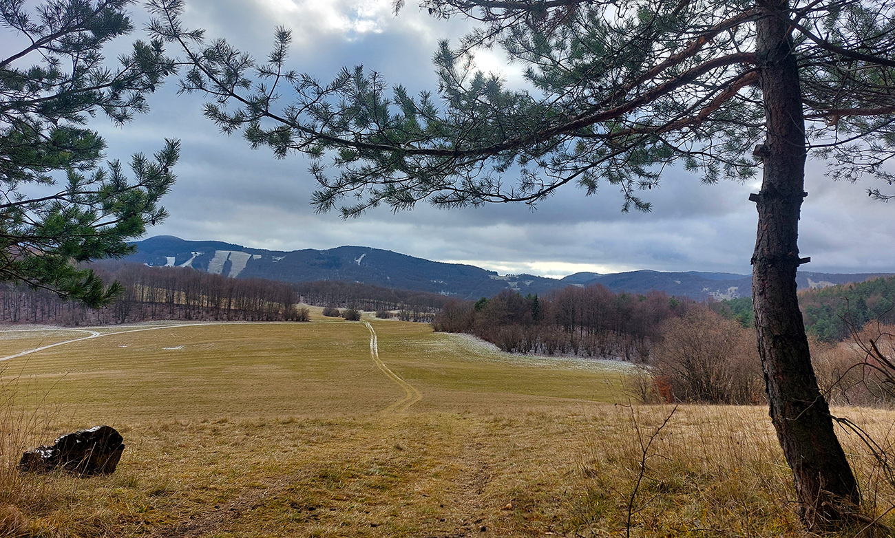 Ešte posledná krátka zachádzka na vyhliadku bola v pláne – na Jeleniu skalu. No tá ledva trčí nad stromy, čiže skoro žiadne výhľady. Akurát masív Butkova oproti trčal, a ten sme teda poctivo obchádzali a obzerali skoro už od začiatku. Ale na ceste ďalej sme našli nejaké trochu zanedbané miestne značky a tie nás celkom logicky vyviedli na lúky nad Belušou, skoro podľa plánu.