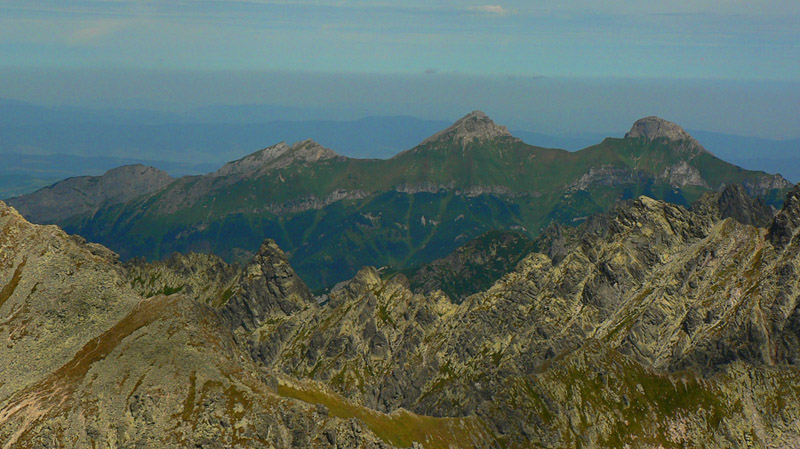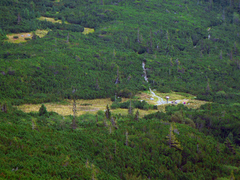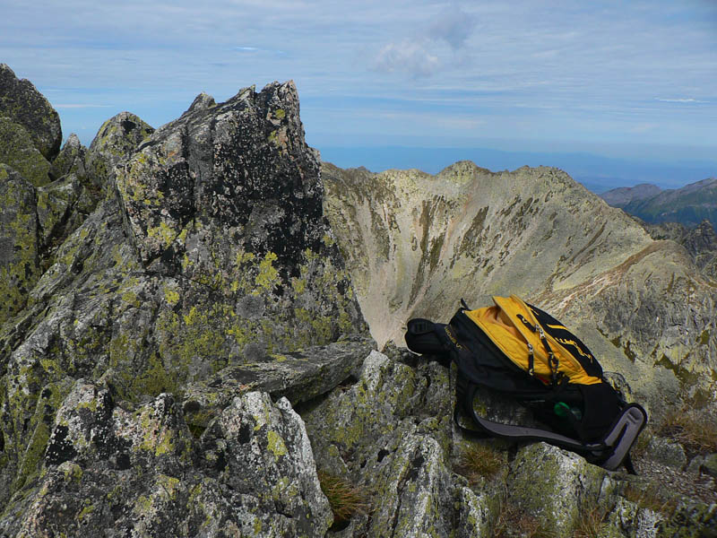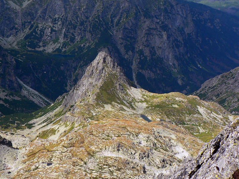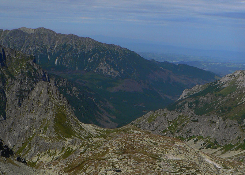 Ďalej som už pokračoval bez zádrhelov, šóru na reťaze som obišiel, nahusto ľuďmi obsypaný smerovník na Poľskom hrebeni tiež, aj samotný, ešte obsypanejší vršok Vysokej - a našiel som si parádne kamenné sedadielko, aj s operadlom, s výhľadom do Veľkej studenej doliny. Paráda, akoby som tu bol sám. Výhľady skvostné na všetky strany, okrem tých klasických na okolité štíty zaujme napríklad pohľad na postup lykožrúta v Bielovodskej doline. Porovnáme o pár rokov...