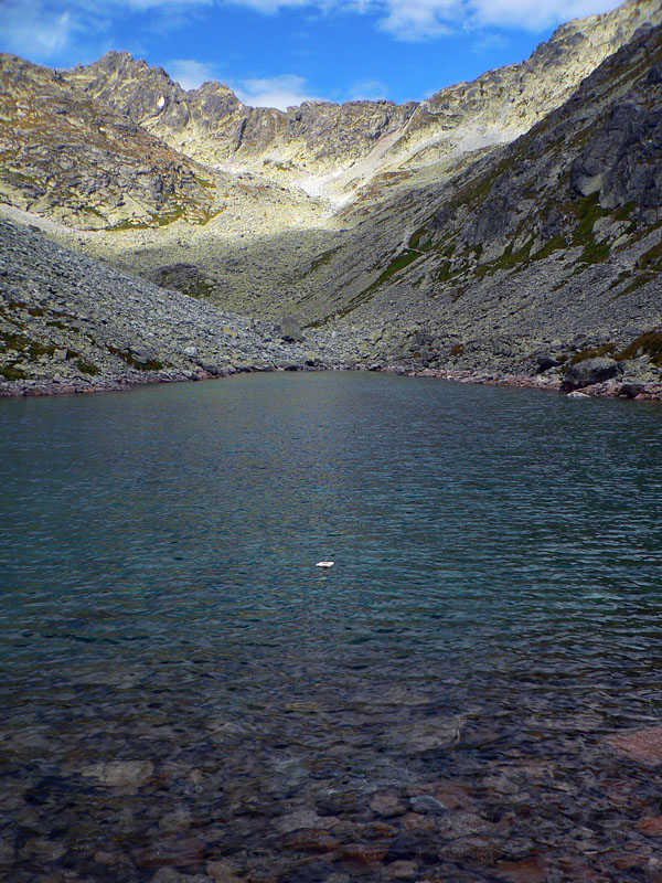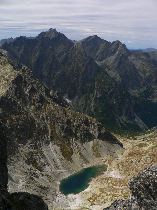 Nahadzujem čiapku, rukavice, všetko čo mám v batohu a neveriacky sledujem, ako okolo mňa prechádzajú ľudia v tielkach. Smerom hore, otužilci :-) O chvíľu je našťastie zas pekne, ozaj to prešlo a davy v tielkach hustnú. Nad Dlhým plesom počuť jódlovanie, až skaly pukajú. Folklorista poriadny: potetovaný, nagelovaný krásavec skúša ozvenu. Keď idem okolo, pýta sa (asi mňa, lebo nik iný tu nie je): Ty kokós, to gde idú tý ludya? Ja kokós sa obzerám a hovorím že asi na Gerlach, keď myslí tých naproti. Ty kokós hento je Gerlach? Znie odpoveď.