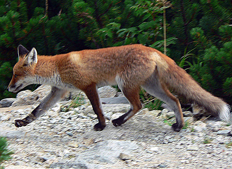 Dolu pri hoteli všetci fotia krotkú líšku – dojedačku. Asi je tu často, už som ju videl na fotkách odtiaľto. Dúfajme že z toho frmolu na parkovisku ešte nezbesnela...