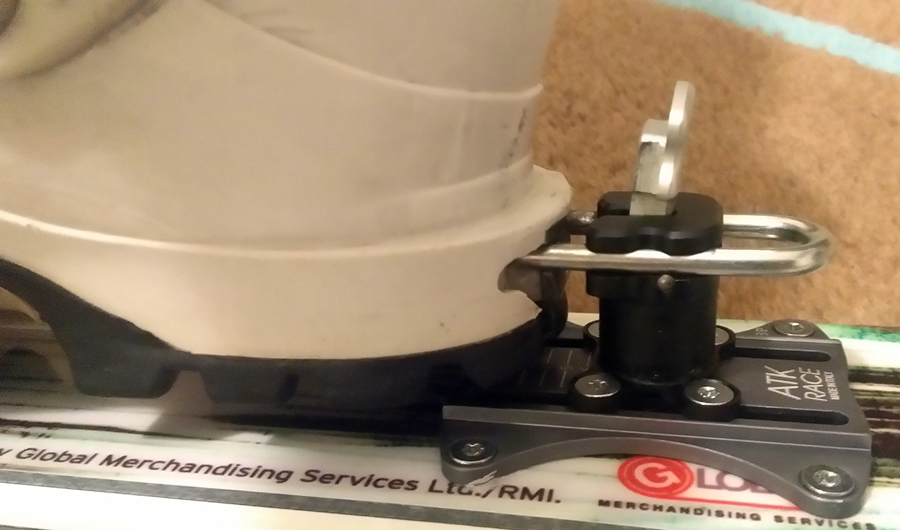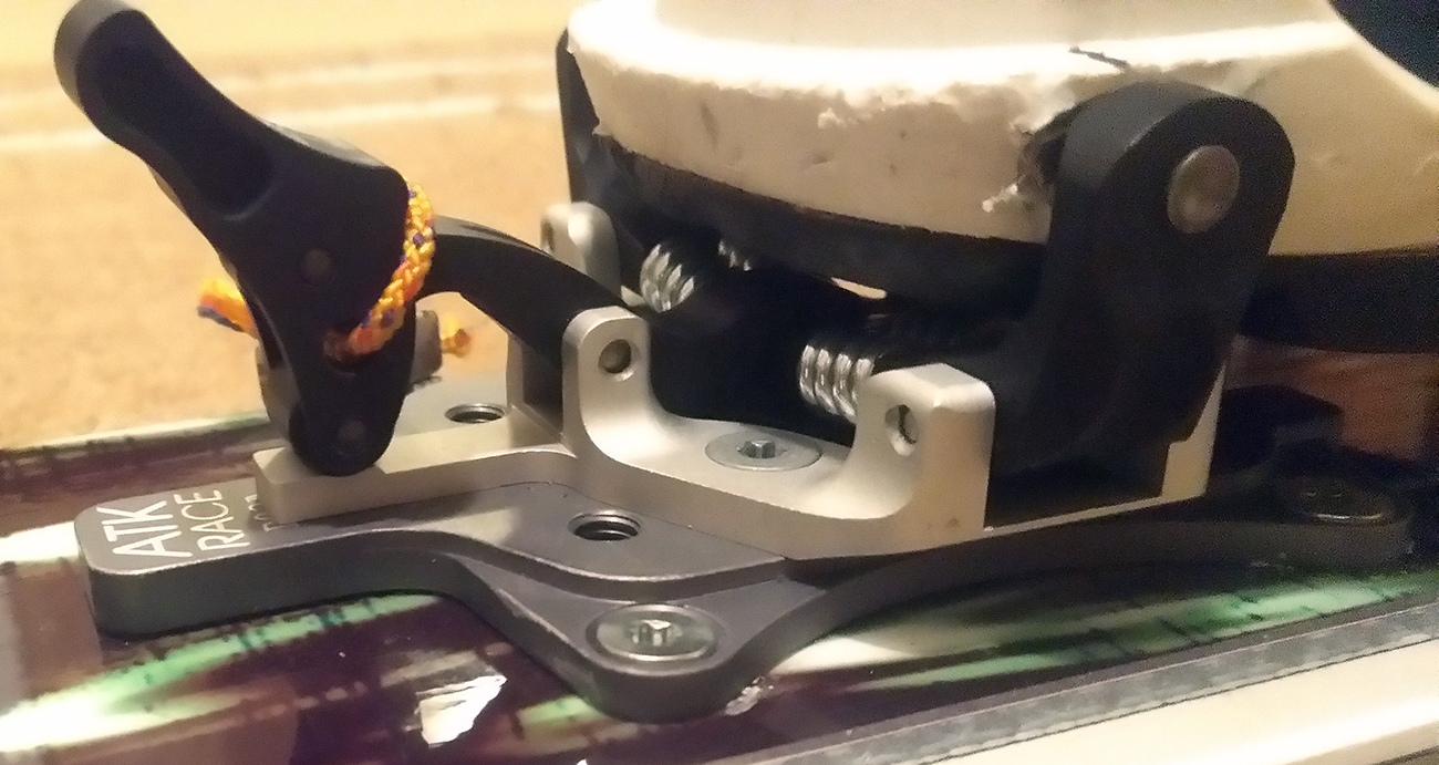 Viazanie som použil na trošku špeciálnu kombináciu. U ATK som zbadal, že ich ambasádor Cala Cimenti použil ATK Trofeo (de facto rovnaká trieda) na širokých XXL podložkách na širokej lyži a celý komplet použil na zlyžovanie Gasherbrumu VII (link TU ). Tak reku keď to funguje overené v takýchto extrémoch, tak snáď to pôjde aj na našich kopcoch. Fotky teda zobrazujú Kreuzspitze SCTT montované na podložkách ATK XXL R03 AP a podložky sú vŕtané (rozteč 6x6cm) do lyží Head špeciálnej edície Motörhead Rock n Roll (šírka 92 mm v strede). Pri doterajšom (síce krátkom) použití sa nevyskytol žiadny problém s viazaním v tomto kombe. Všetko hrá ako má: ľahko, rýchlo, jednoducho.