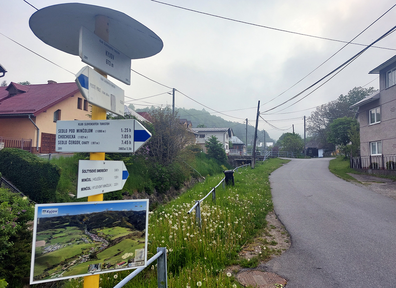 Takže piatok, koniec noci, povinná miestenka a narvaný rýchlik plný chrápajúcich chlapov, vracajúcich sa na východ z roboty. Nezávidím im. V Kysaku prestup do príjemnejšieho REXu, našťastie meškanie sme mali len také akurátne a REX už nemešká vôbec, tak v Lipanoch na autobus do Kyjova bez stresu. Toto vyšlo nad očakávanie, lebo s našim „náhodným dopravcom“ človek nikdy nevie. V Kyjove ma prekvapujú dve modré smerom na Minčol, jedna je zjavne nová, ale volím pre istotu klasiku. Trochu švihám, lebo ma klepe. Neviem či od chladu alebo od adrenalínu. Vyhýbam sa hordám slimákov a krásnou krajinou, cez svieže lúky a čvirikajúce ranné lesy stúpam na Minčol. Zvyšky hmly prefukuje príjemný severný vetrík, zvyšky rosy mám už v topánkach, no s tým sa musí rátať. 50 minút a som hore. Cestou som trochu analyzoval svoje pocity a porovnával ich s predošlými takýmito šialenstvami. V tých očakávaniach pred niečím neznámym je vždy taký mix radosti z poznávania a obáv z utrpenia. Vyšlo mi, že tentokrát som sa akosi viac obával, asi už starnem, konzervatívniem, pohodlniem. No, uvidíme...