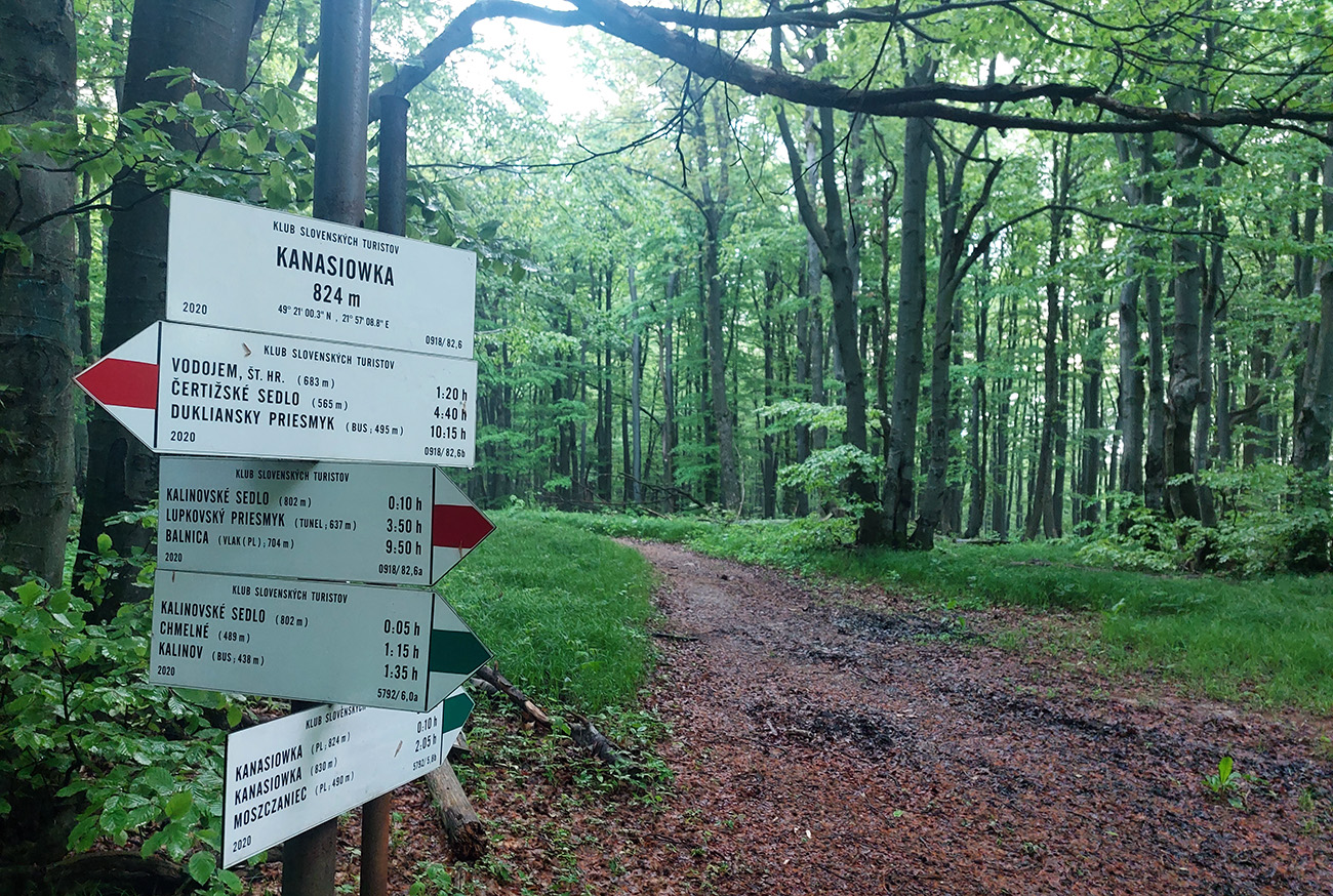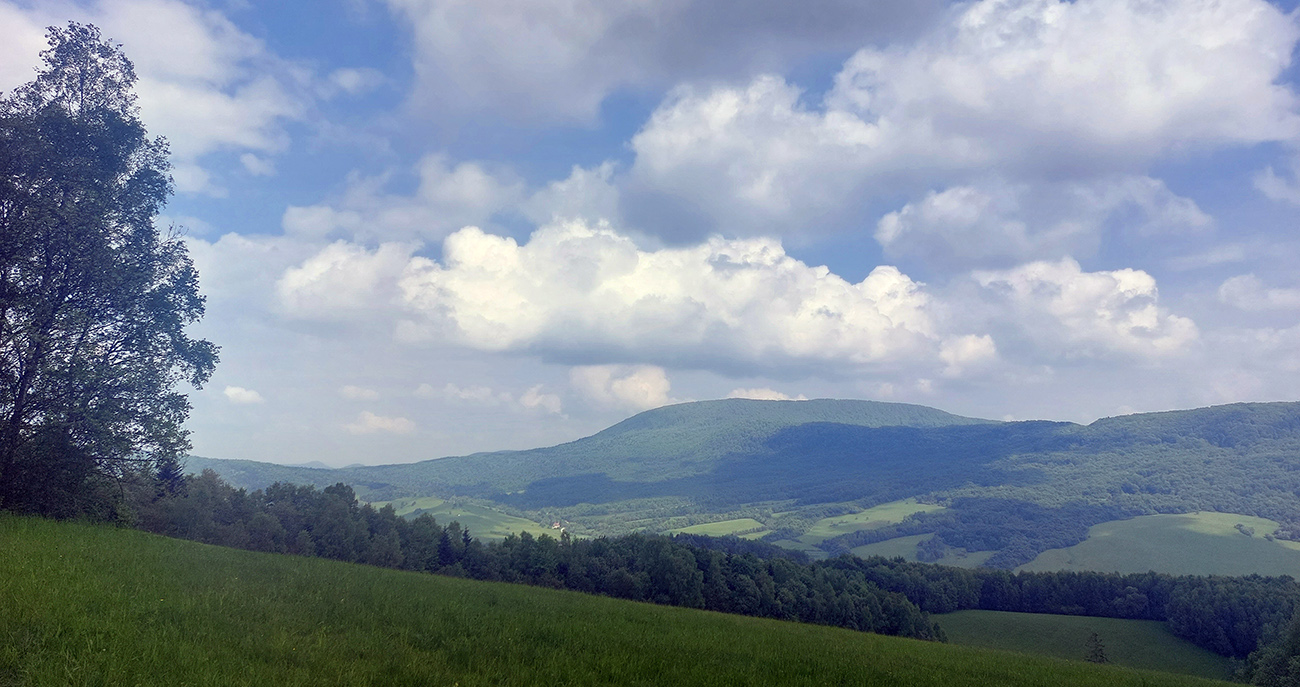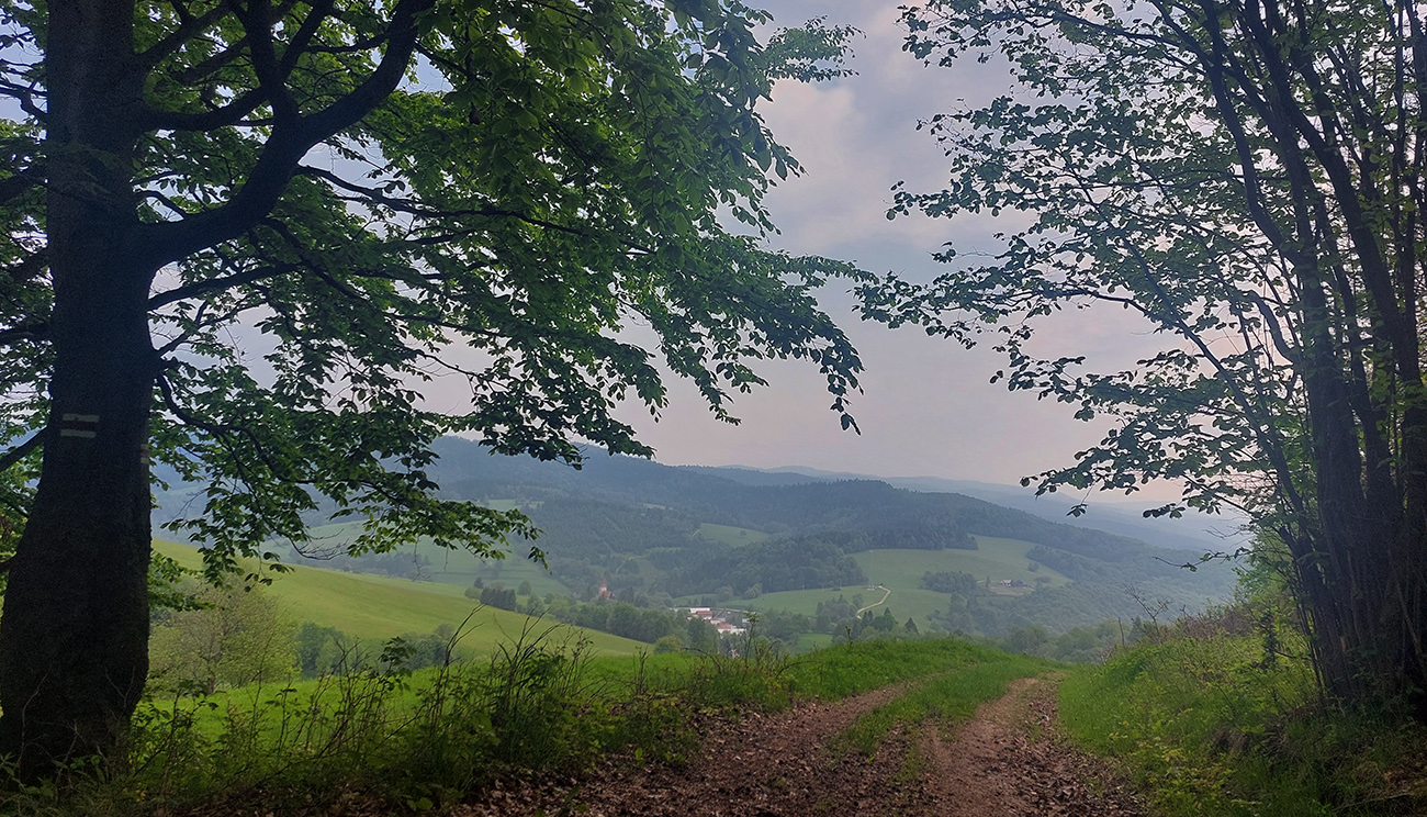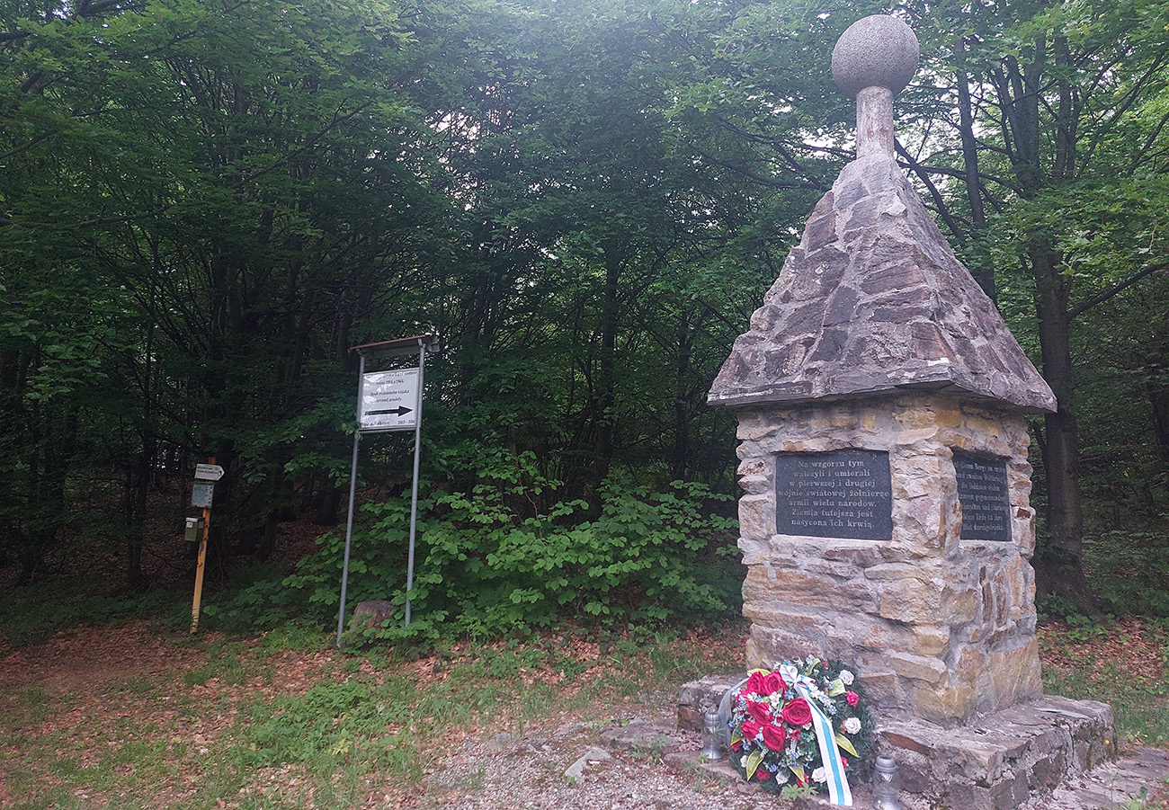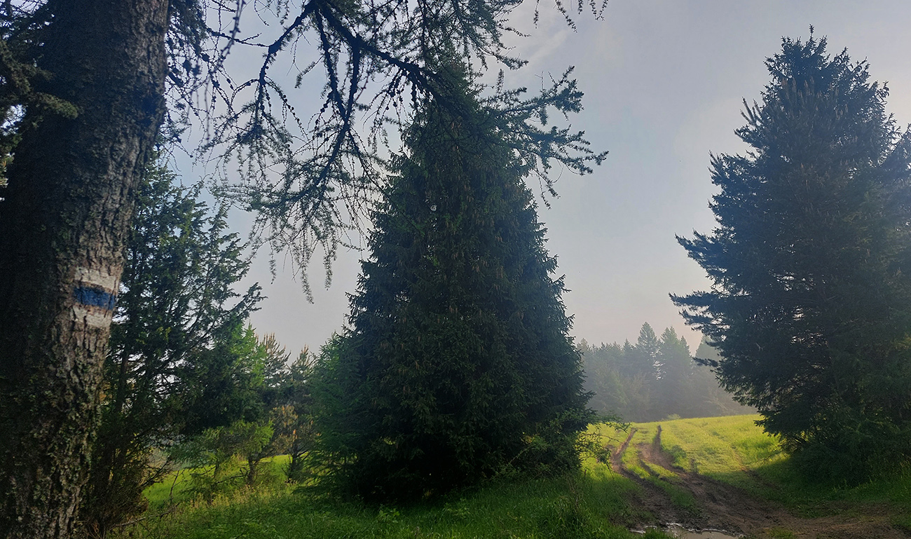Medzi tým, pred tým aj potom pekné lesy, ale aj rúbane, vojenské cintoríny, stará vojenská pozorovateľňa na Pasekách aj zákonom chránené jedliny - a stále hore a dole. Zase začínajú strmšie sklony. Prvá séria „štipľavých kopčekov“ začína stúpaním na Szcołb (769 m) a končí v Balnici. Kríza už našťastie povolila, no stúpania idem stále pomalšie.