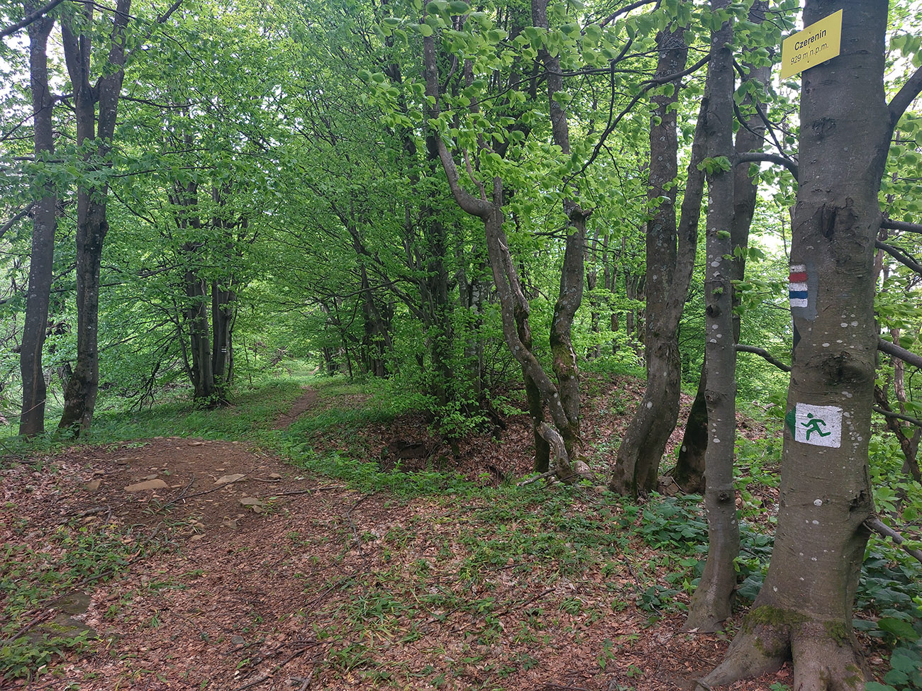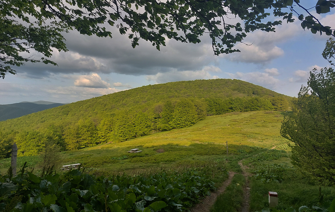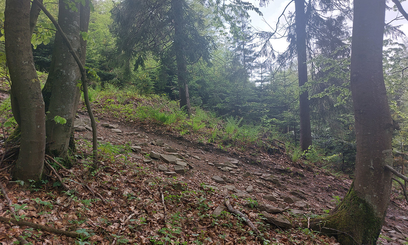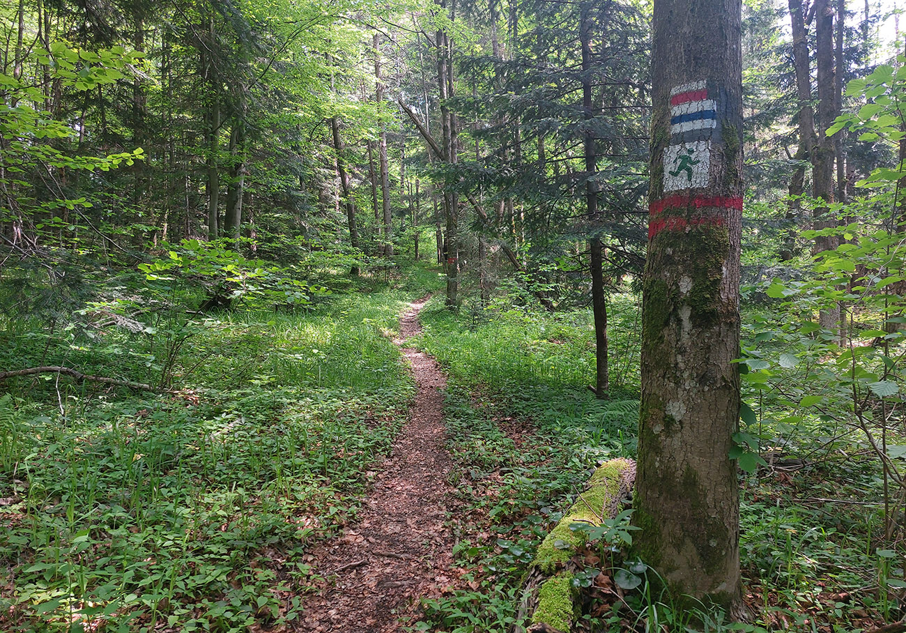 Medzi tým, pred tým aj potom pekné lesy, ale aj rúbane, vojenské cintoríny, stará vojenská pozorovateľňa na Pasekách aj zákonom chránené jedliny - a stále hore a dole. Zase začínajú strmšie sklony. Prvá séria „štipľavých kopčekov“ začína stúpaním na Szcołb (769 m) a končí v Balnici. Kríza už našťastie povolila, no stúpania idem stále pomalšie.