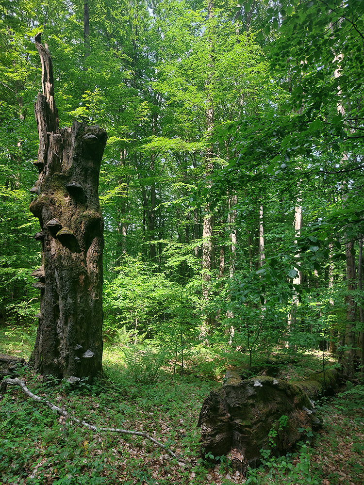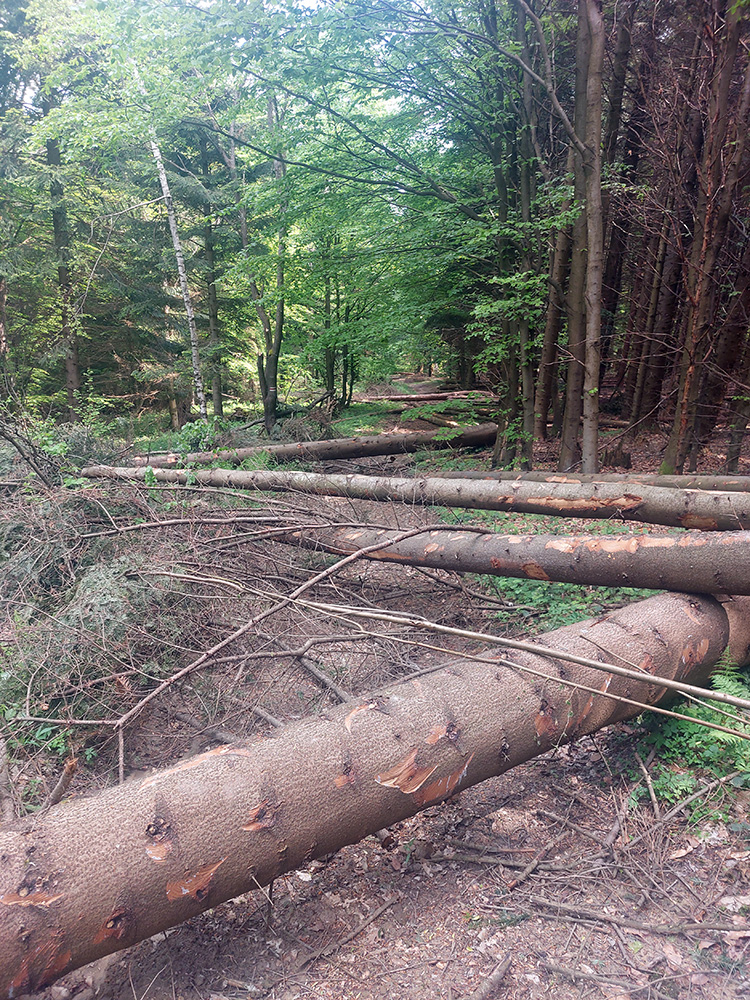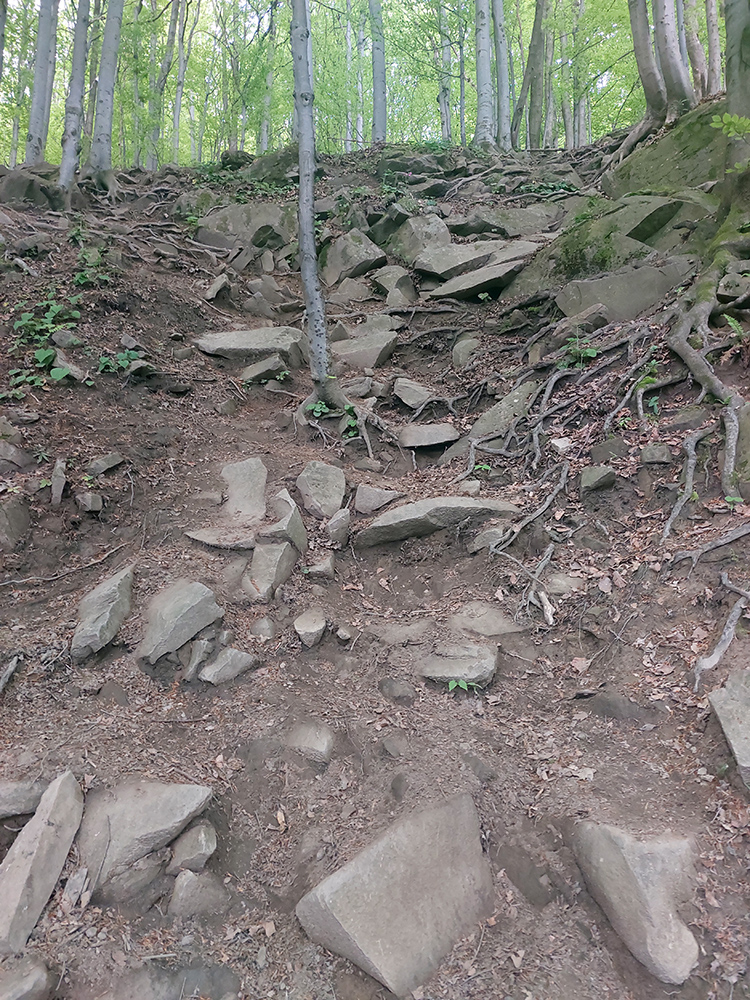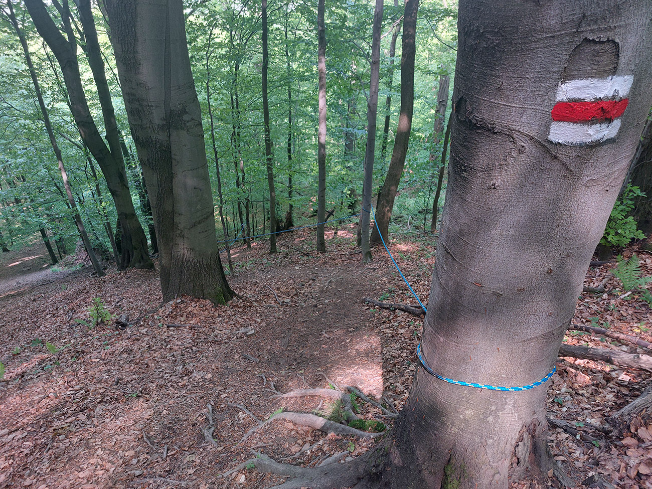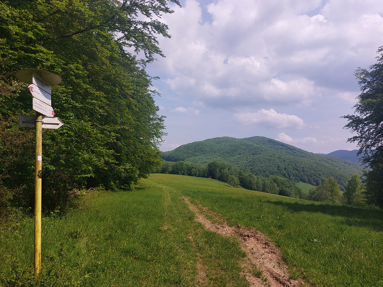 Medzi tým, pred tým aj potom pekné lesy, ale aj rúbane, vojenské cintoríny, stará vojenská pozorovateľňa na Pasekách aj zákonom chránené jedliny - a stále hore a dole. Zase začínajú strmšie sklony. Prvá séria „štipľavých kopčekov“ začína stúpaním na Szcołb (769 m) a končí v Balnici. Kríza už našťastie povolila, no stúpania idem stále pomalšie.