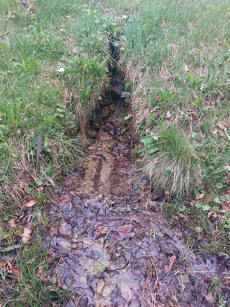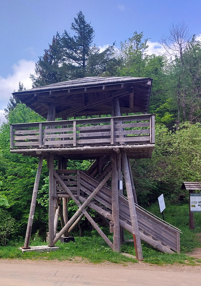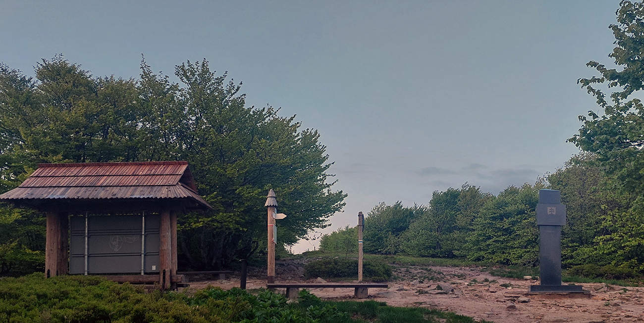 O pol štvrtej začína nebo blednúť a o štvrtej už všetky miestne spevavce vreštia ako divé. Vraj božské lesné ticho, no určite, hehehe... Krajina okolo Haburského rašeliniska je zaujímavá: zmena oproti bežným, kompaktným lesom doteraz, ako na prechádzke parkom si pripadám. Len v parku to pod nohami tak nečvachtá. O pol piatej balím čelovku, aj v prítmí lesa už vidím dobre. Ešte som si naposledy zasvietil do vodojemu, ktorý ma ale napriek očakávaniam a názvu sklamal. Je to len ruina. Na jej dne síce rúra a z nej výdatne tečie voda na pohľad lákavá, ale v mojom stuhnutom stave by som musel podať poriadny gymnastický výkon, aby som sa k nej dostal. Našťastie nemusím a po Balnicu ešte nejaké pramienky budú. V tejto „druhej polovici“ to s vodou už nie je také zlé ako pred Duklou.