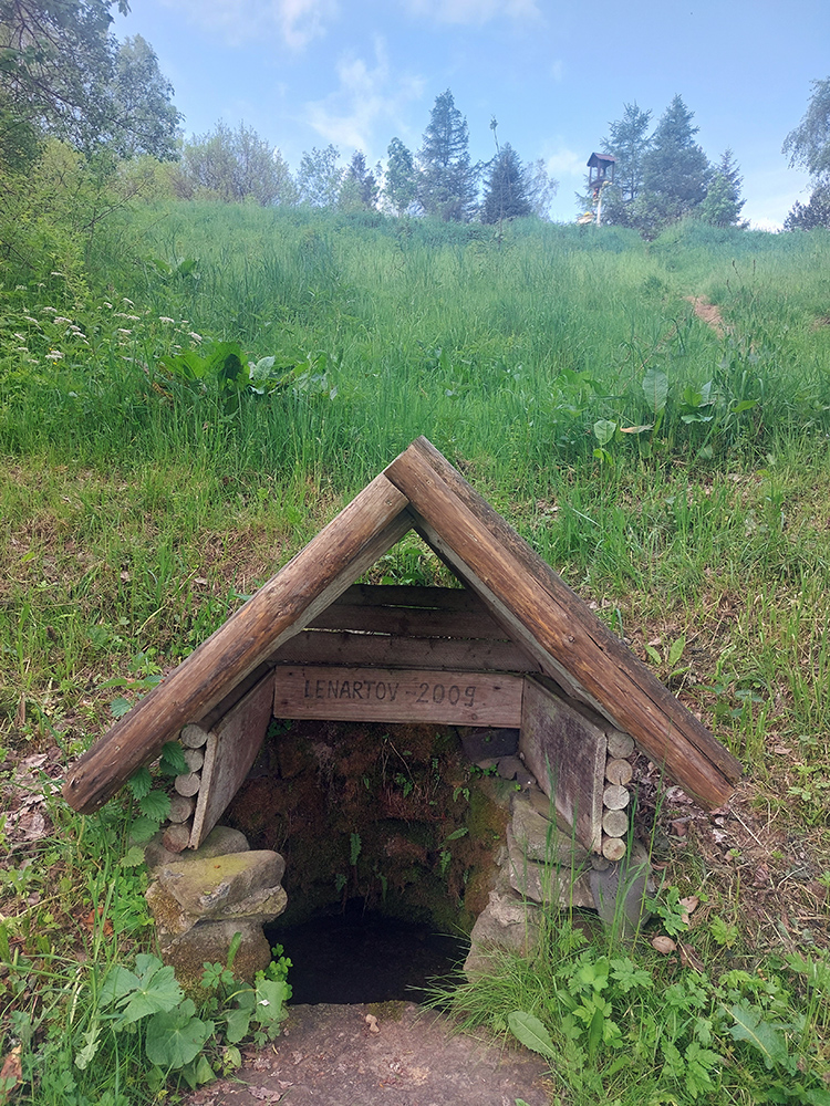 Po raňajkovej slanine ma začína trochu „sušiť“, ale aj s tým som počítal, a tak pijem koľko mi chutí, už som blízko k vode. A ozaj, pri kostole na poľskej strane sedla Cigeľka je okrem iných stavbičiek aj normálna studňa. Akurát odchádza školský výlet a v plechovom vedre ostalo po detiskách ešte dosť parádnej, čerstvo naťahanej vody – to je almázia! Lebo ďalšia možnosť dotankovať je až na 99. kilometri, pod vrcholom kopca Stávok pred Duklou. To by mala byť istota – síce malý pramienok, ale voda tam bola aj koncom augusta, počas Rusínskej stovky.