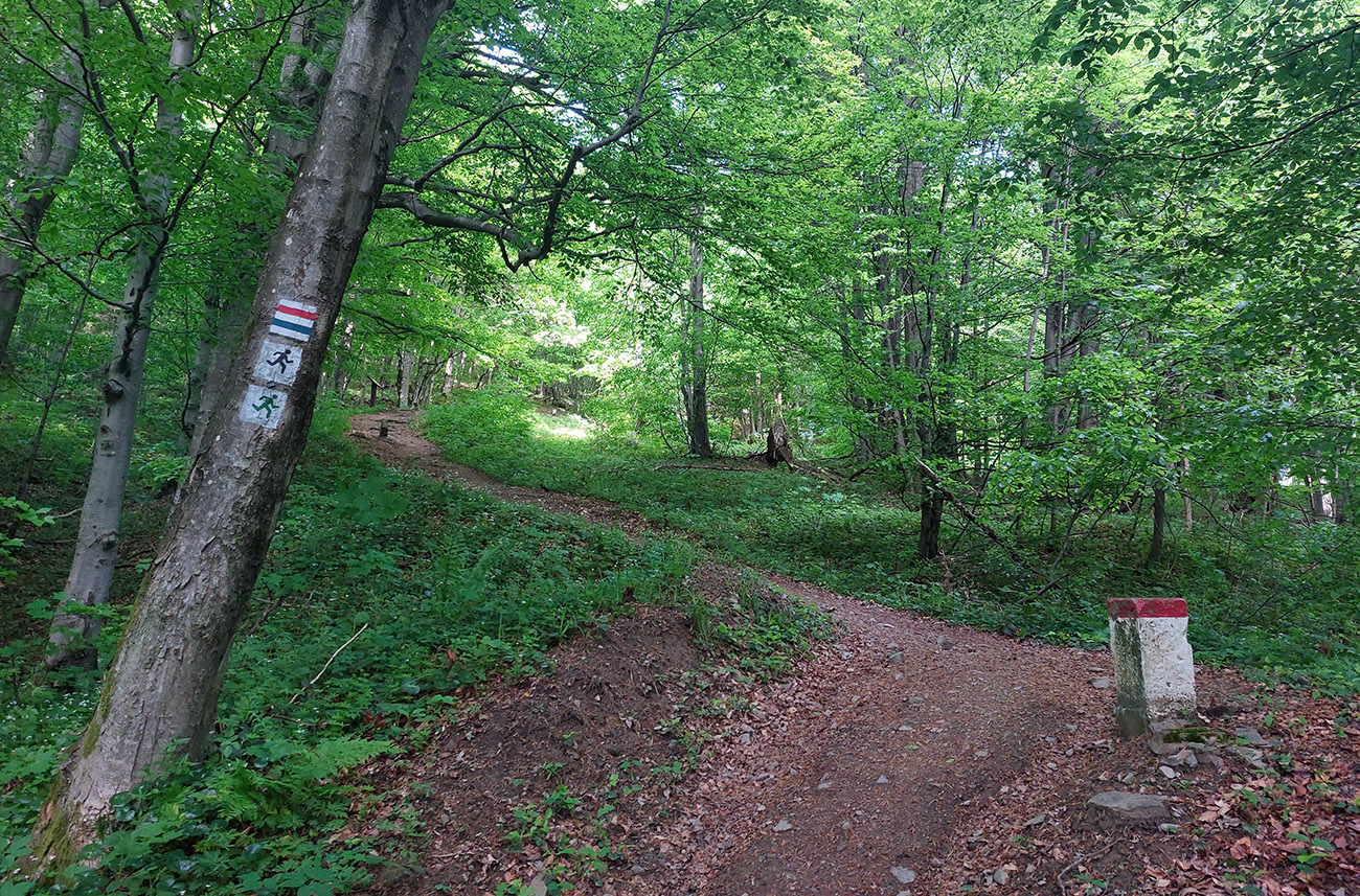 Nie je náročná len parametrami (vraj 248 km a 10 500 v. m.) a logistikou (pre stredoslováka). Pre niekoho aj monotónnosťou, Furt v takom zelenom tuneli, len les a chodník. Kľukatosť je ďalšia výzva – myslel som si, že na hranici to bude pekne prečistené, ale nie. Na mnohých miestach obchádzačky, preliezačky, vyhýbačky. Buď popadaných stromov, alebo blata a hlbokých mlák v koľajach po autách, alebo jednoducho zarastených úsekov. Málo vody – ďalší problém. Na hrebeni a vo flyšovom podloží, klasika... Preto je dobré ísť na jar a mať aj nejaký malý „naberáčik“. Mne poslúžil vrchnák z cyklistického bidónu. Na druhej strane je to krásna divočina a pod nohami v podstate stále pohodlne mäkkúčko. Niekedy až príliš, hehe... Takže som zvážil plusy a mínusy a keď som si koncom mája myslel, že mám čosi natrénované, sadol som o druhej ráno do rýchlika a išlo sa. Výsledok je tu a pod obrázkom aj popis. Snáď niekomu pomôže: