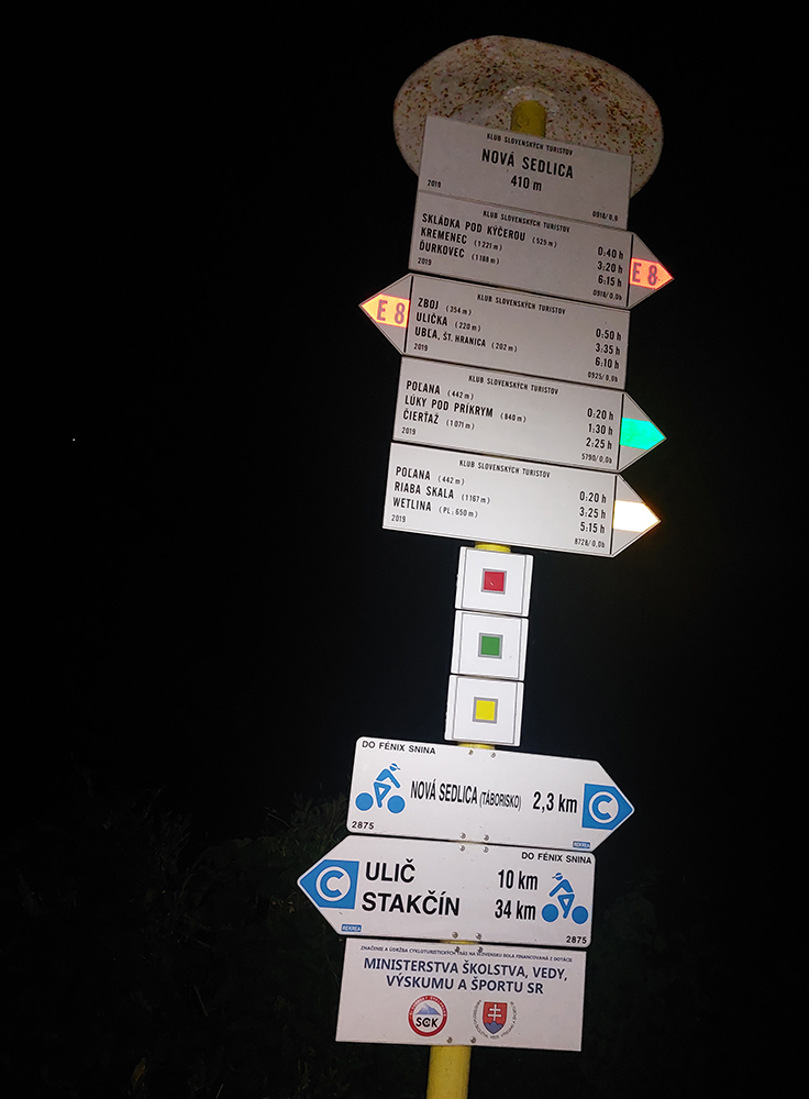 Zbiehaním do Novej Sedlice zároveň začínajú aj trochu problémy s navigáciou – ako inak, na rozmlátených zvážniciach (a najmä na ich križovatkách) sú v noci značky niekedy mimo dosah čelovky. Ale cieľovú rovinku som si poctivo naštudoval (myslel som si). Takže najskôr krčma, práve zavierajú, ale kým dopijú... Kola do zásoby a tentokrát pre zmenu horalky. Hádam na posledné tri - štyri hodiny to bude stačiť. Ale samozrejme, pre istotu ešte aj niečo svoje mám. A už asfaltujem do Zboja. Rozmýšľam, na čo je toto dobré? Chvíľu vykecávam s policajnou hliadkou (potom ešte s jednou). Že ma značka v Zboji posiela z hlavnej za potok na „nový“ eurofondový chodník, to by bolo fajn, keby ho mal kto udržiavať (tráva aj po ramená) a keby nekončil aj so značkou medzi maštaľami. Tak nazad na asfaltku a napriek jednej ďalšej výzve na prechod cez potok (žiadny chodník v burine nevidno) takto pohodlne šmatlám až do Uličského Krivého. A tam to začína!!!