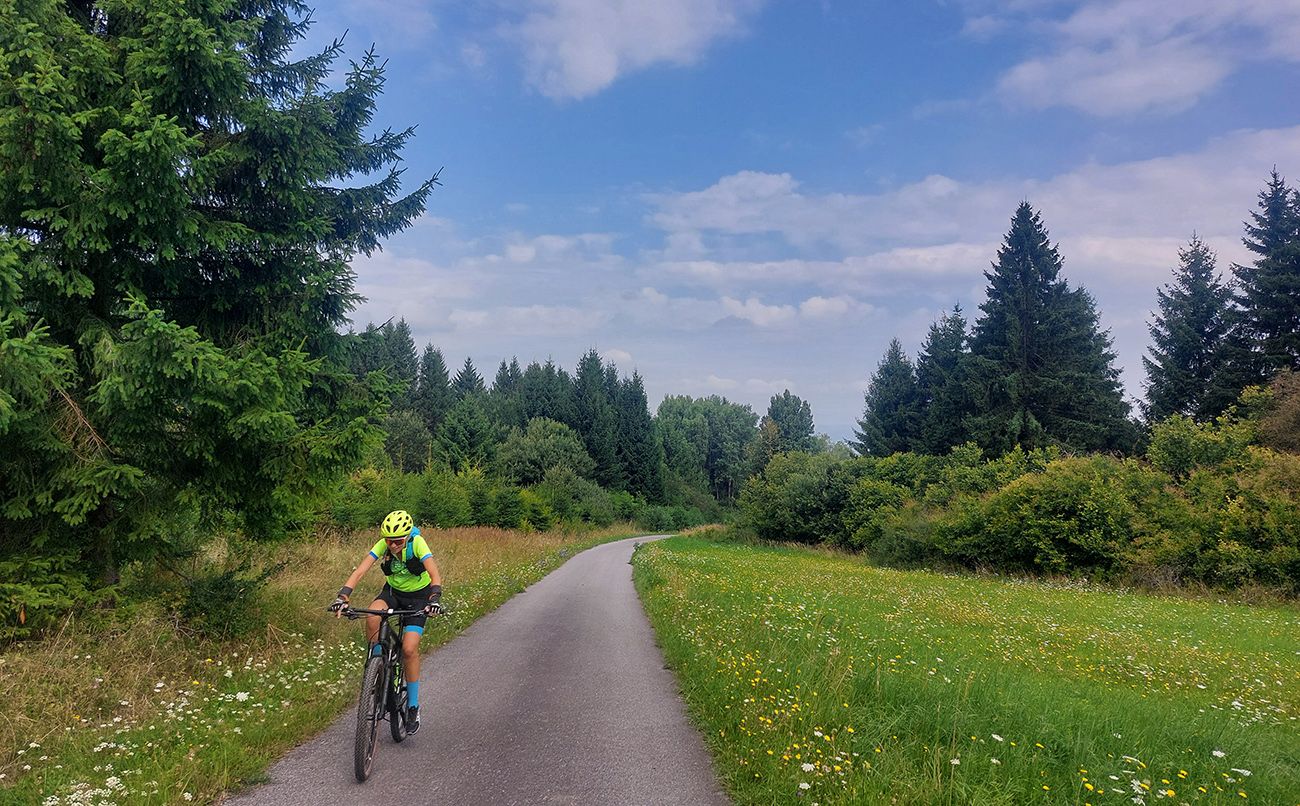 Potom už len zošup na panoramatické Sklenianske lúky, zjazd dedinou natiahnutou ako slíž a popri kostole nazad do Rovnej hory a proti protivnému protivetru na niečo fajné čapované do Teplíc, lebo na vlak času dooosť. Fajné to bolo, vďaka za inšpiráciu, aj keď ortodoxný bajker by nad tými cestami možno mávol rukou a nechal ich gravelistom :-) Ale veď cykloturistika, nie?