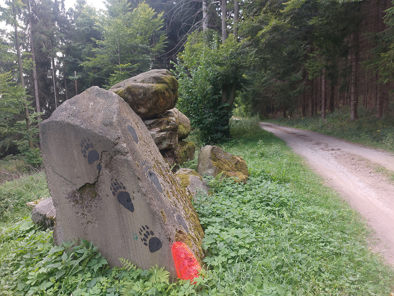 Ale tak zhodli sme sa, že tej červeno značenej hrebeňovke (Inak súčasť Cesty hrdinov SNP) dáme šancu a skúsime to po nej až na Sklenianske lúky. Kúsok smerom na juh sme aj tak absolvovať museli a od zjazdu do podhoria nás odrádzala aj tá holorubná realita tam - na turčianskom podhorí. Nakoniec to nebolo až také hrozné. Väčšinou pekná cesta pekným lesom, aj keď pár strmších úsekov je rozrytých a bolo treba potlačiť. Pod Horeňovom sme aj dotankovali z pramienka pod pňom, aj sa lesných plodín napásli.
