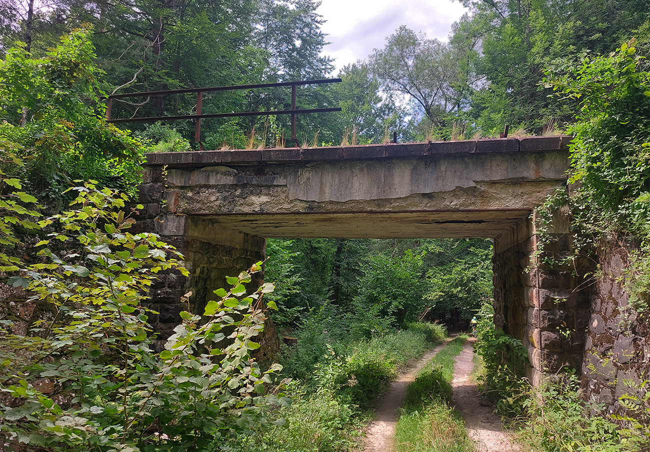 Takže úvod – dlhý, asfaltový, lebo od vlaku. S výhľadmi na masív pohoria vpredu, potom cez Rovnú horu po novom asfalte. Taký rovný, luxusný pokračoval aj von zo Skleného cez lúky za železnicou. Až v dlhom stúpaní Rovnou dolinou sa zmenil na nepríjemne rozvoľnený a hrubý makadam, striedaný hrboľatou šutrocestou. Aj dole sa tade ide zle. Potom pauza na predýchanie pri trhacej jame nad Kunešovom a išlo sa ďalej.