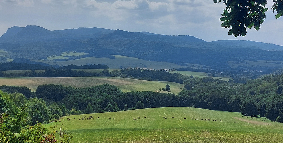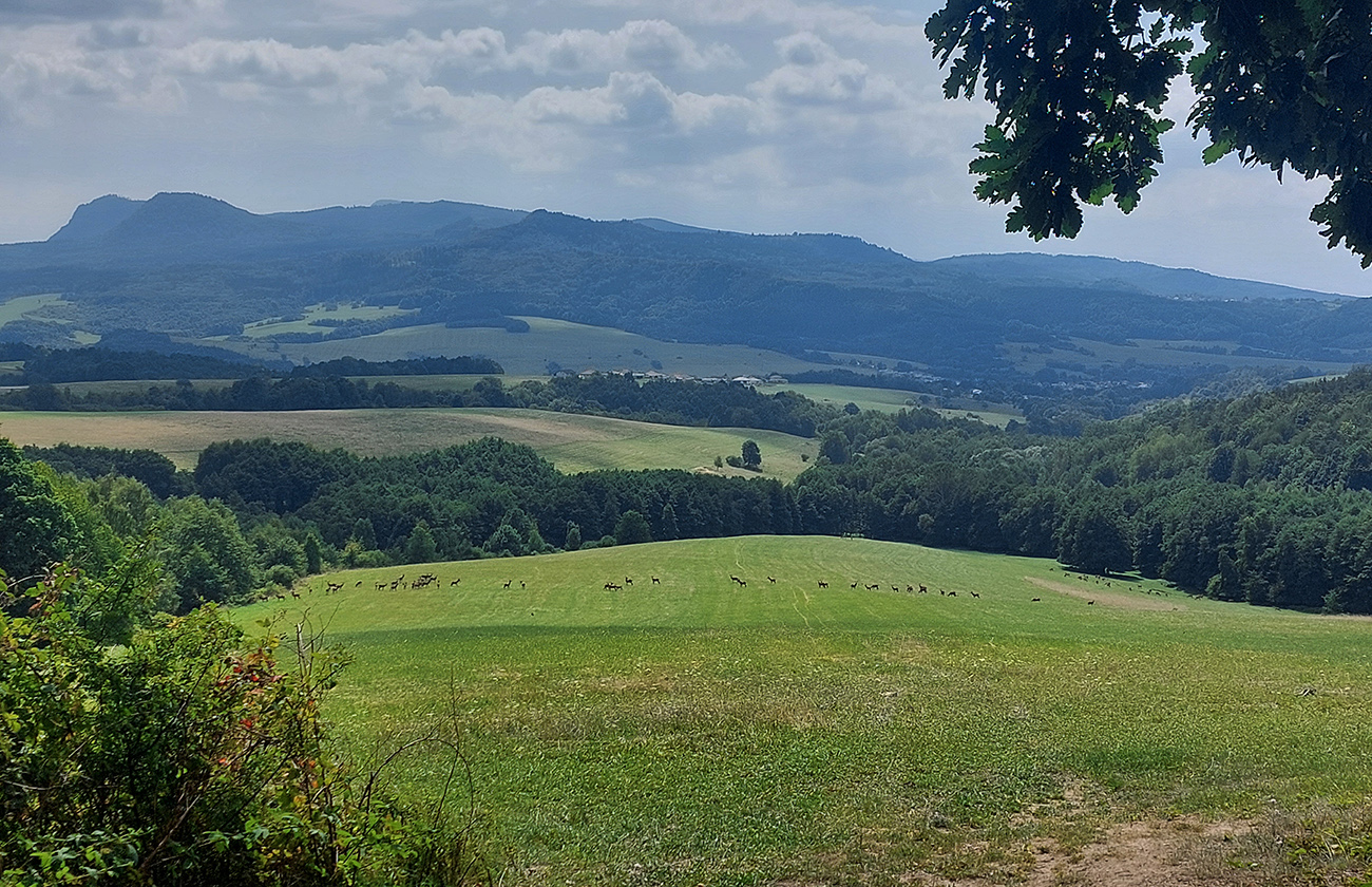 Nasledovala odmena v podobe nekonečného, ale najmä pohodlného jazdenia, kde sa pod kolesami striedali asfalty rôzneho veku so šotolinami, po ľavej ruke časté priehľady do lúčnej krajiny Handlovskej kotliny, nad hlavou klenba lesa, občas priateľsky bielomodrá obloha a raz aj Hájska skala. Aj miestne antilopy zapózovali na ráztočnianskej savane :-)