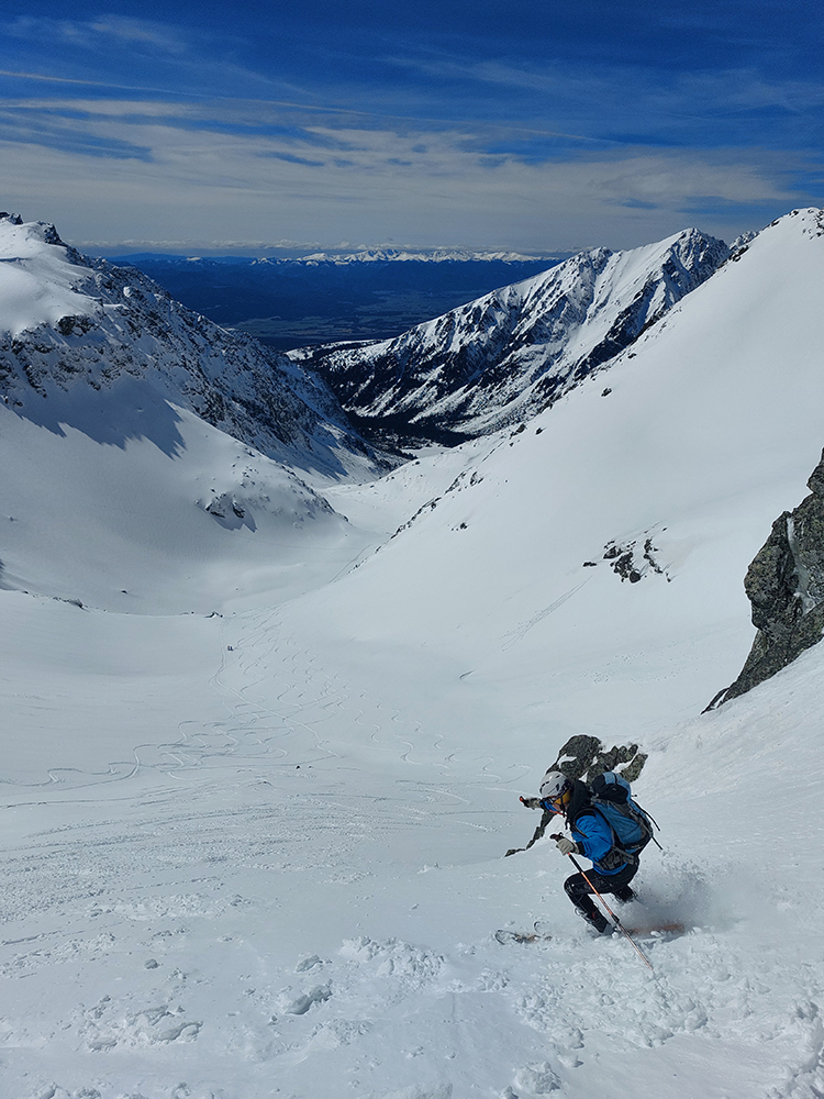 Veľkonočné horúčavy sa valili, no piatok mal byť ešte teplotne použiteľný. Nočný front čosi máličko prisnežil, zato na Popradskom už ráno nadnulovo a na hrebeňoch víchrica od západu. Tepla cez deň pribúdalo a z víchrice neubúdalo, zato dopoludnia azúro, že až plech!