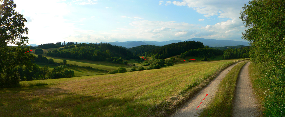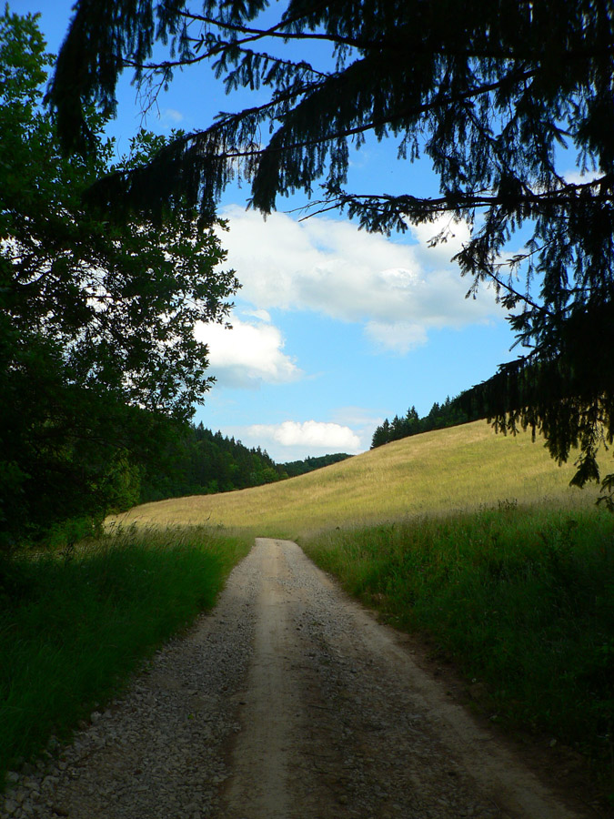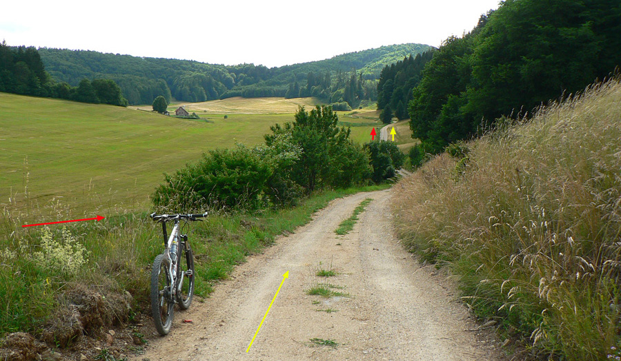 Väčší okruh: na začiatok príjemné, pozvoľné stúpanie celou Driekyňou, ktorá sa na hornom konci otvára a pristrmuje. Hore nad Lehôtkou fotogenická, zvlnená, lúčnatá krajina s výhľadmi, taká „cykloturistická“, dá sa tu po rôznych cestách motať do aleluja :-) Dve z ciest vedú pekným zjazdíkom po lúkach k samote Ratajová v strede kotlinky zvanej Pôlč. Tam sa pripája malý okruh a pri vjazde do lesa znova aj zelená turistická značka. O kus ďalej, za starou drevenicou (kde zelená a malý okruh odbočujú doprava) už len rovno po ceste treba valiť, do záverečného „hrkotavého“ zjazdu. Lebo zo zdanlivo rovného povrchu zvážnice toho dosť trčí a v tieni lesa to nie je vždy vidieť. Tu by lepšia bola dáka žehlička ako hardtail :-) Dole v Plavne sme za pár minút.