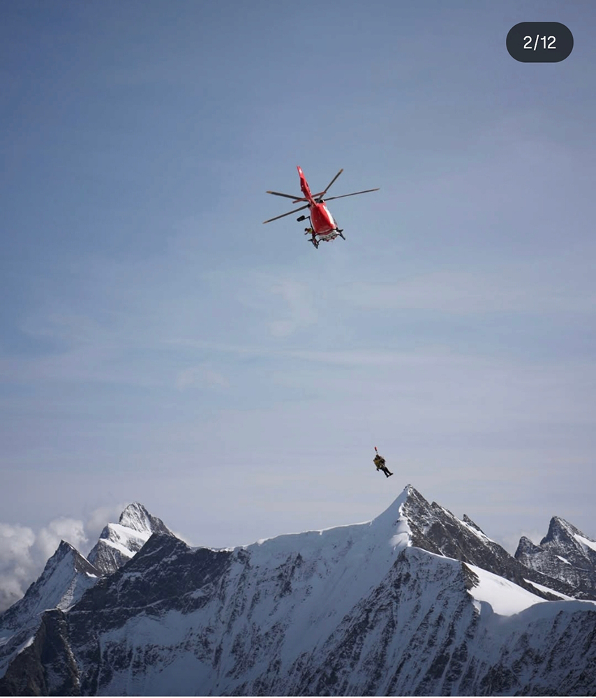 Keď sa znovu objaví lano od helikoptéry, Jonas ho chytí, cvakne do postroja, zdvihne ruku, a za menej ako sekundu so S vystrelíme do vzduchu tridsať metrov nad hrebeň. Vidím malého Jonasa, ako zostal sám na našej platforme, trochu viac v diaľke mlaďasov, ako nás fotia, a hlboko pod nami rozvrásnený ľadovec, čo včera v jednom kuse hučal. Mám srdce v krku, pomaly sa točíme, a vnímam približujúci sa hluk rotora, ako nás lano pomaly vyťahuje hore. Prelietame ponad hrebeň a potom zasneženú, ikonickú a strašidelnú severnú stenu Eigeru, a o pár minút nás už spúšťajú na trávnik v Grindelwalde. Dole nás odstroja dvaja záchranári a vrtuľník odletí pre mladých. Všetko v poriadku? Bežte si sadnúť tam na schody, posiela nás s úsmevom záchranárka preč z trávnika. Je tu teplo.