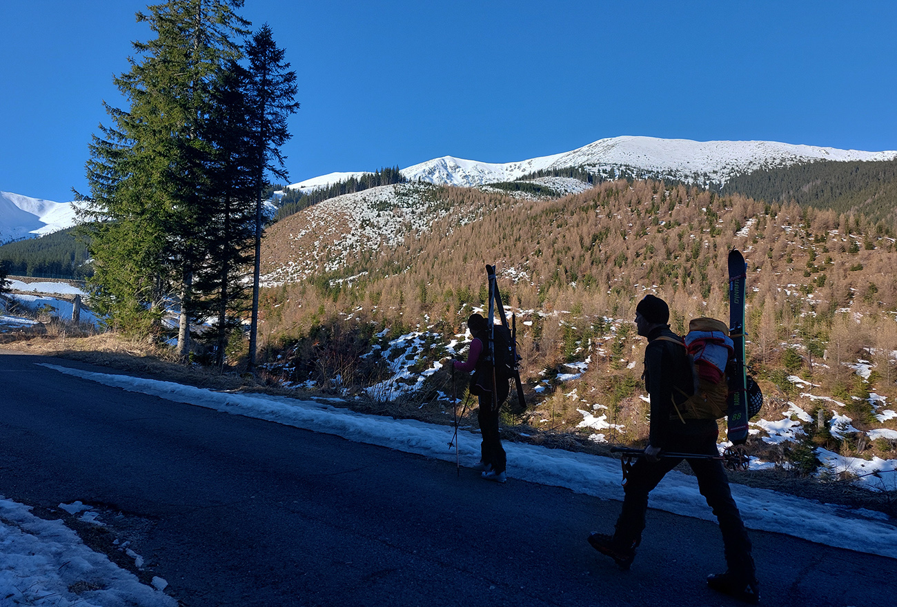 Potom sa to už zlepšilo a ako sa to otvorilo, aj sa oteplilo. Do sedla Poľany cikcaky čím vyššie, tým komfortnejšie, lebo odmäknutejšie, ale hromadne využívané boli aj pešiacke schodíky.