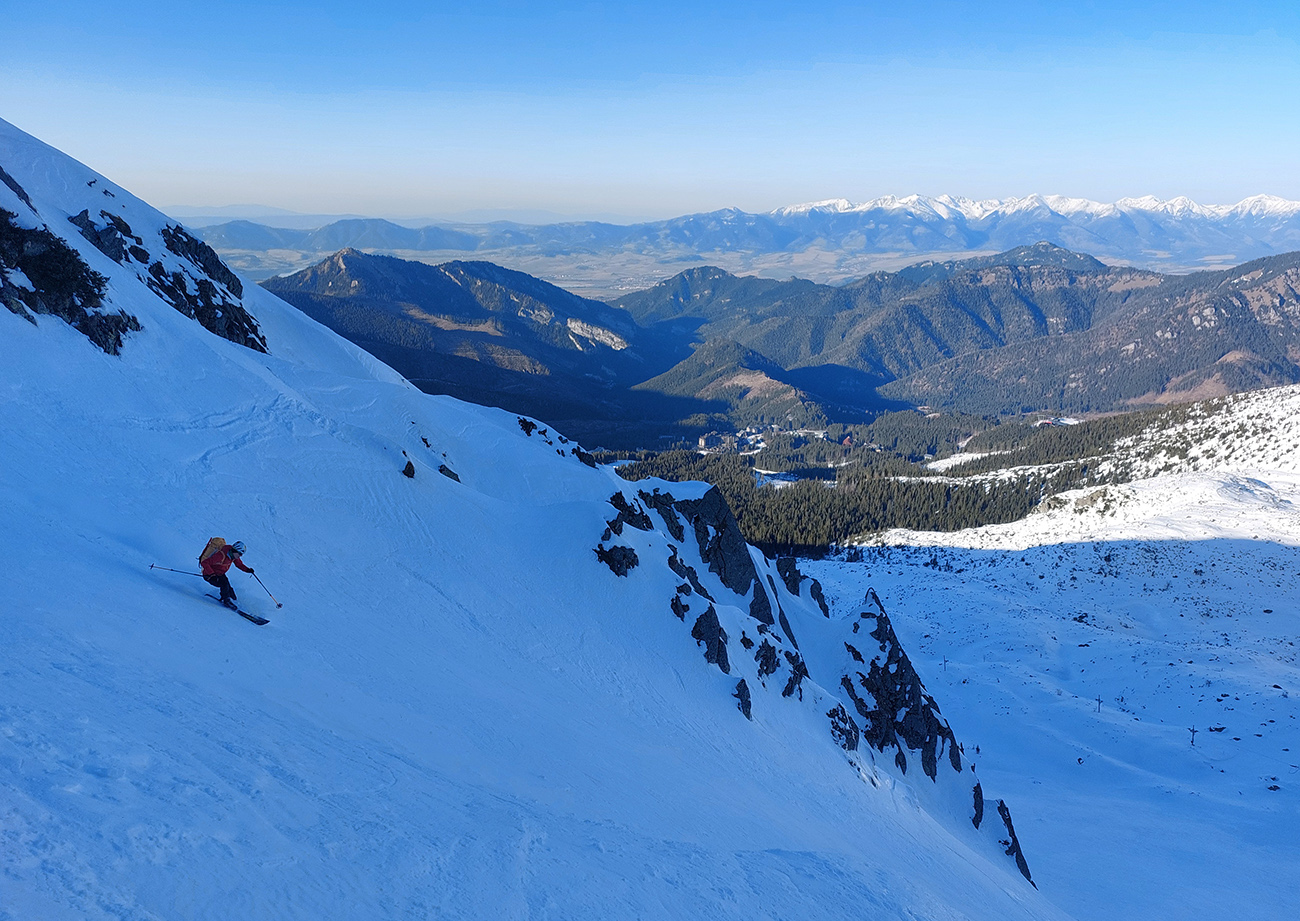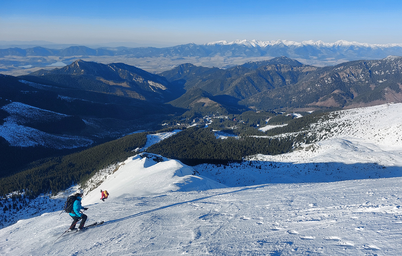 Sobota, siedmy marec, vyrazili sme do mierneho mrazíku z parkoviska P1 v Jasnej, smer Sedlo Poľany. Obloha gýčovito čistá, očakávaný úpek na južných svahoch. Severy vraj v top podmienke, uvidíme cestou hore. Plán bol okúsiť a zlyžovať takto zrána aspoň jeden juh niekde pod Kotliskami, potom pred páľavou utiecť do Derešských kotlov. Nakoniec to bolo mierne inak, ale nevadilo, aj keď nás mierne upieklo, poniektorých aj celkom na mäkko. A 2000 výškových je vraj celom dosť na takú prechádzku – no čo ja viem? Každopádne podobný nápad, ako sa dosať na hrebeň, malo v rovnakom čase doooosť veľa ľudí, ani sme sa nedivili. Lepšie ako po zjazdovkách. Keď sme potom popoludní po záverečnej zbehli dole, COROSy ukázali toto: