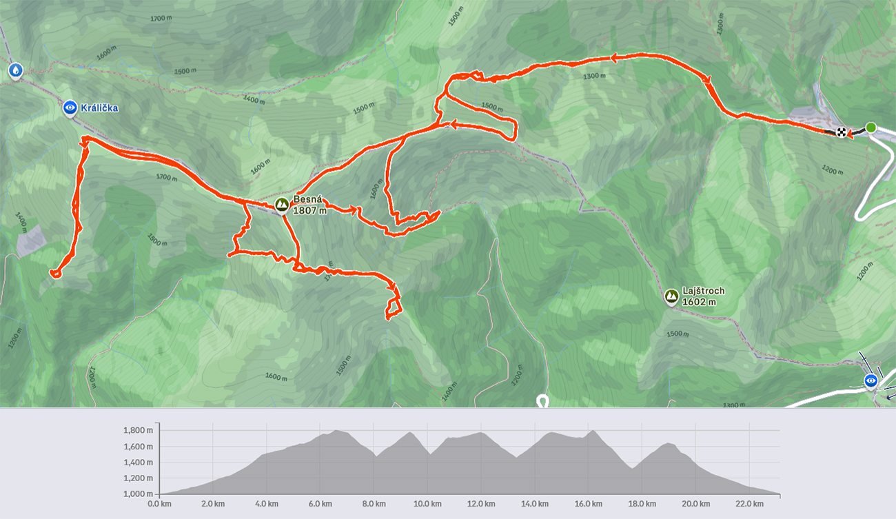 Dve nohy už chytajú akúsi krízu, ale aj čas pokročil, tak zhora šmýkame po hrebeni nazad na Besnú, že teda ešte ten „východný centrál“ dáme a z neho po zelenej značke vylezieme do Kumštového sedla. Zámer čiastočne plníme. Lyžovačka výborná, aj pod Besnou to už zmäklo, len zelenú značku chytáme iba chvíľu na spodku, potom sa smerom hore stráca a stopy vedú inde. Tak traverzujeme priamo na Panskú hoľu a dobre robíme.