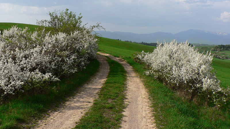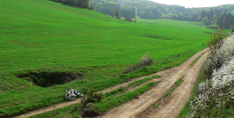 Na východ od Banskej Bystrice, smerom pod Poľanu, ležia nízke guľaté vŕšky, kryté striedavo lesmi, poliami a najviac asi lúkami. Ale hlavne pretkané hustou sieťou ciest a chodníkov, kde sa dá do nekonečna blúdiť, najlepšie na bajku. Pod kolesami väčšinou šotolina, neveľa technických pasáží, rýchle a komfortné zjazdy, mierne tiahle stúpania... Ideálny kút na jarné rozjazdenie. A ukážkové počasie prvomájovej stredy nedovolilo sláviť sviatok práce celý deň len prácou, tak som aspoň popoludní na pár hodín vyrazil.